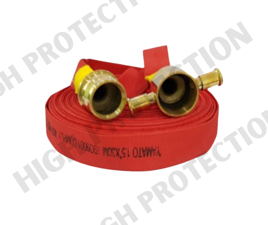 สายส่งน้ำดับเพลิง ชนิดผ้าใบ/ยางสังเคราะห์ พร้อมข้อต่อสวมเร็วทองเหลือง ยี่ห้อ YAMOTO ขนาด 2.5x30M.