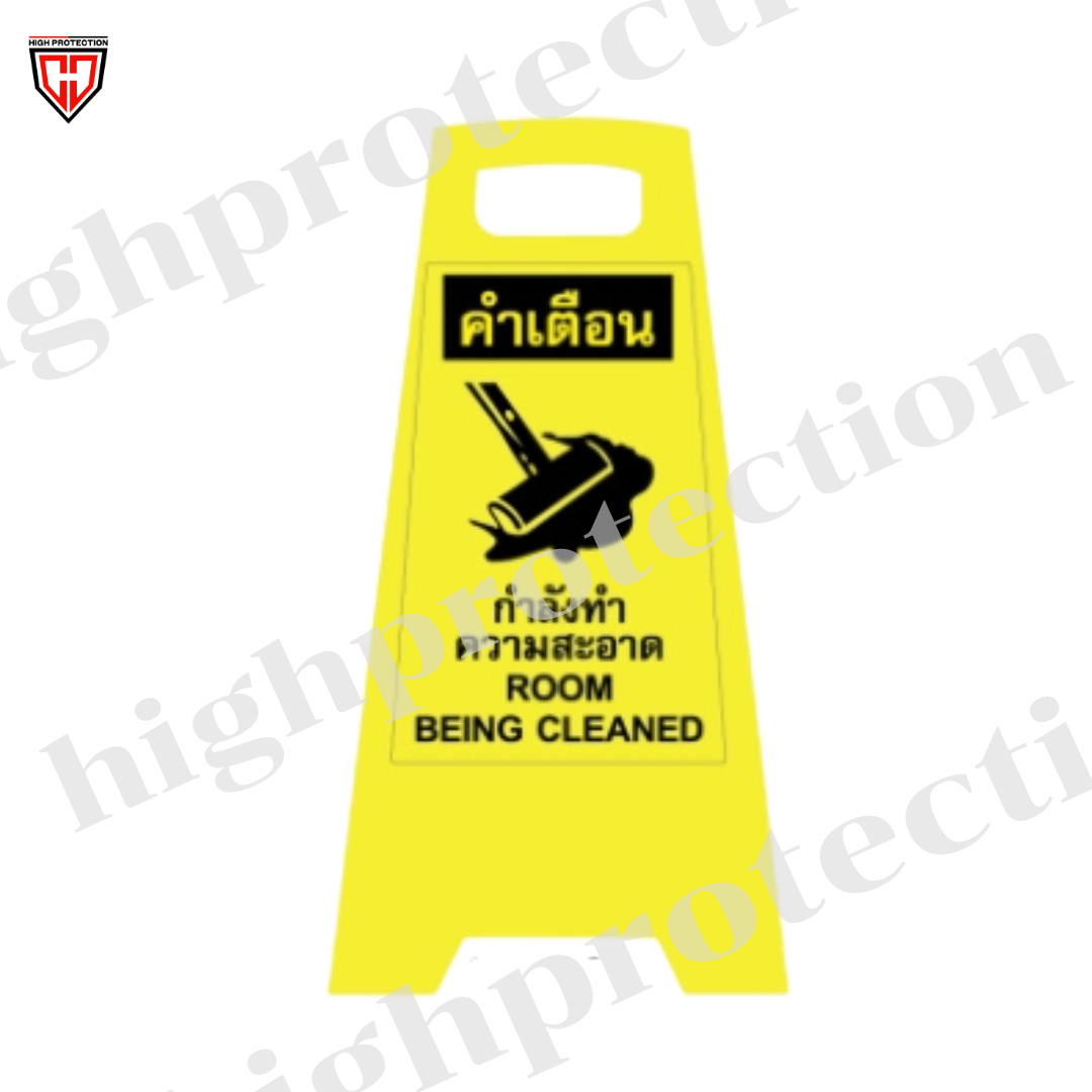 ป้ายตั้งพื้นสีเหลือง กำลังทำความสะอาด