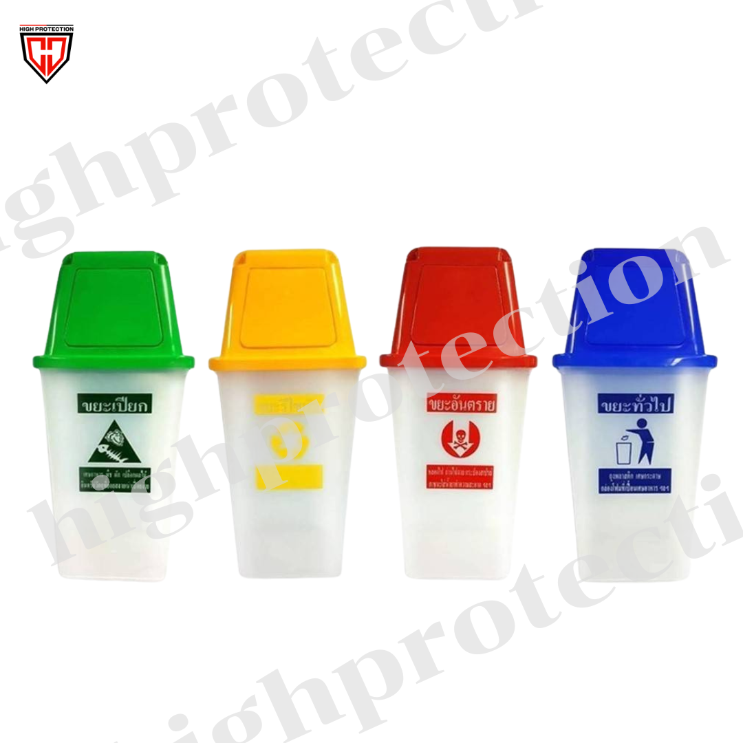 ถังขยะใสทรงเหลี่ยม พร้อมฝาครอบ ขนาด 60 ลิตร