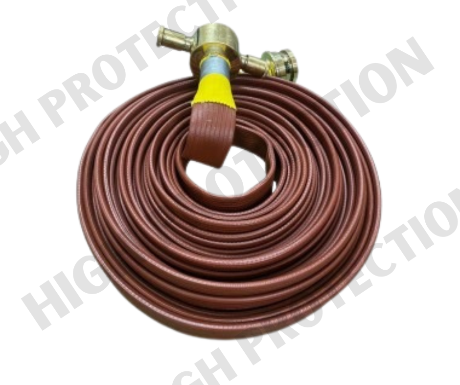 สายส่งน้ำดับเพลิง ชนิดยางไนไตร NITRILE พร้อมข้อต่อสวมเร็วทองเหลืองเกลียว NH ยี่ห้อ GOMTEX ขนาด 2.5x30M.