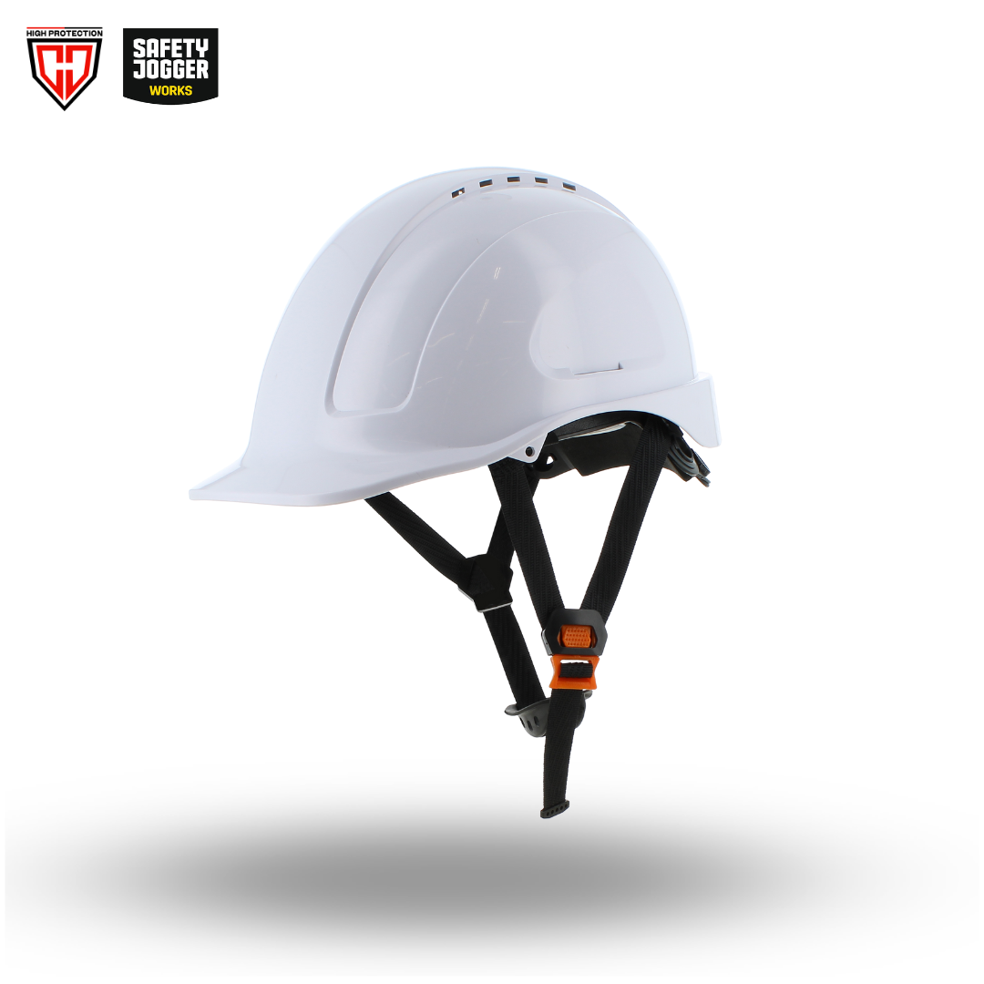 หมวกนิรภัย ปรับหมุน SAFETY JOGGER รุ่น AJUSCO CHINSTRAP หมวกนิรภัยน้ำหนักเบามาพร้อมสายรัดคาง 4 จุดแบบถอดได้ สายรัดผ้า 6 จุด วัสดุของหมวกเป็น ABS ระบายอากาศได้ดี และมาในรูปแบบปรับหมุน รับประกันการป้องกันที่เชื่อถือได้ในดีไซน์ที่แข็งแรงและน้ำหนักเบา พร้อมตัวป้องกันคางยางนุ่ม และสายรัดผ้า 6 จุดที่สวมใส่สบาย ปรับขนาดแถบคาดศีรษะได้ง่ายโดยใช้ปรับหมุน และสามารถใช้ร่วมกับที่ครอบหูแบบถอดได้ เพื่อป้องกันการทำงานที่มีเสียงดังจนเกินไปได้ ที่สำคัญน้ำหนักของหมวกจะอยู่ที่ 357 กรัม